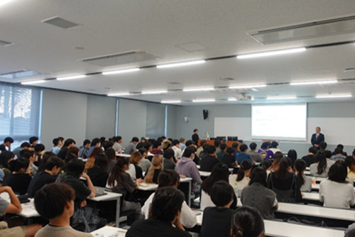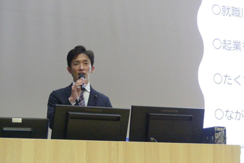 演題:「長崎県議会の現状と課題」 演者:虎島泰洋議員 対象:長崎県立大学の学生 355名 |
