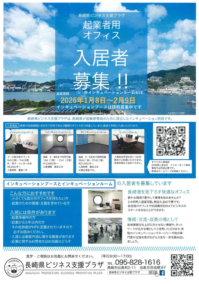 「長崎県ビジネス支援プラザ」が、インキュベーションブース・ルームの入居募集を開始しました!