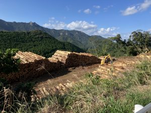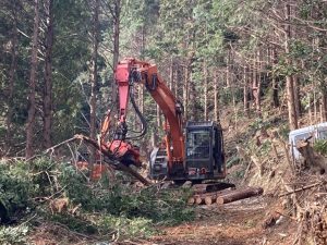 県営林を整備するために、森林作業道を開設し、利用間伐を実施しています。