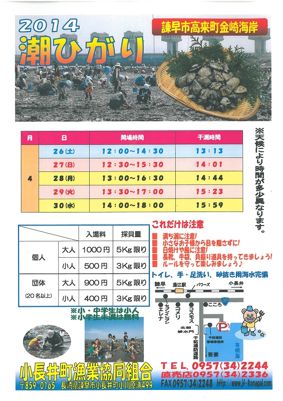 ・入場料 個人大人1,000円(採貝量5kg限り)、子供500円(採貝量3kg限り)