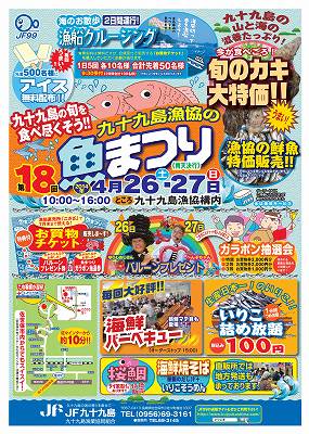 4月26日土曜日と27日日曜日の2日間、佐世保市小佐々町の九十九島漁協にて、「九十九島漁協お魚まつり」が開催されます。