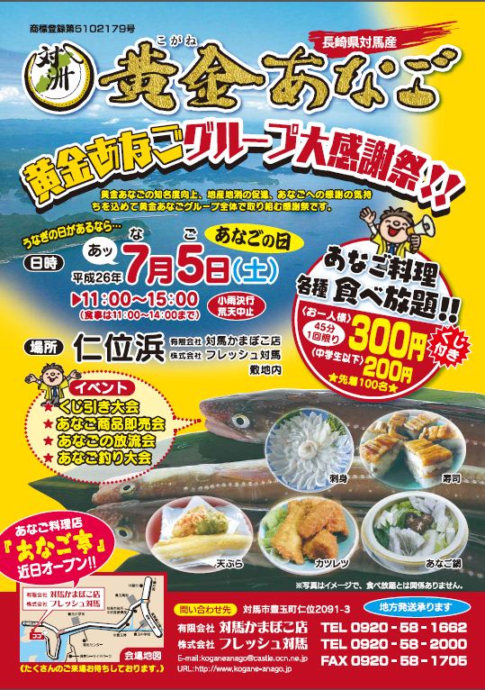 7月5日はあなごの日!黄金あなごの知名度向上、地産地消の促進また黄金あなごグループの大漁祈願、安全操業を願い、あなごへの感謝の気持ちを込めて黄金あなごグループ全体で感謝祭を行います。