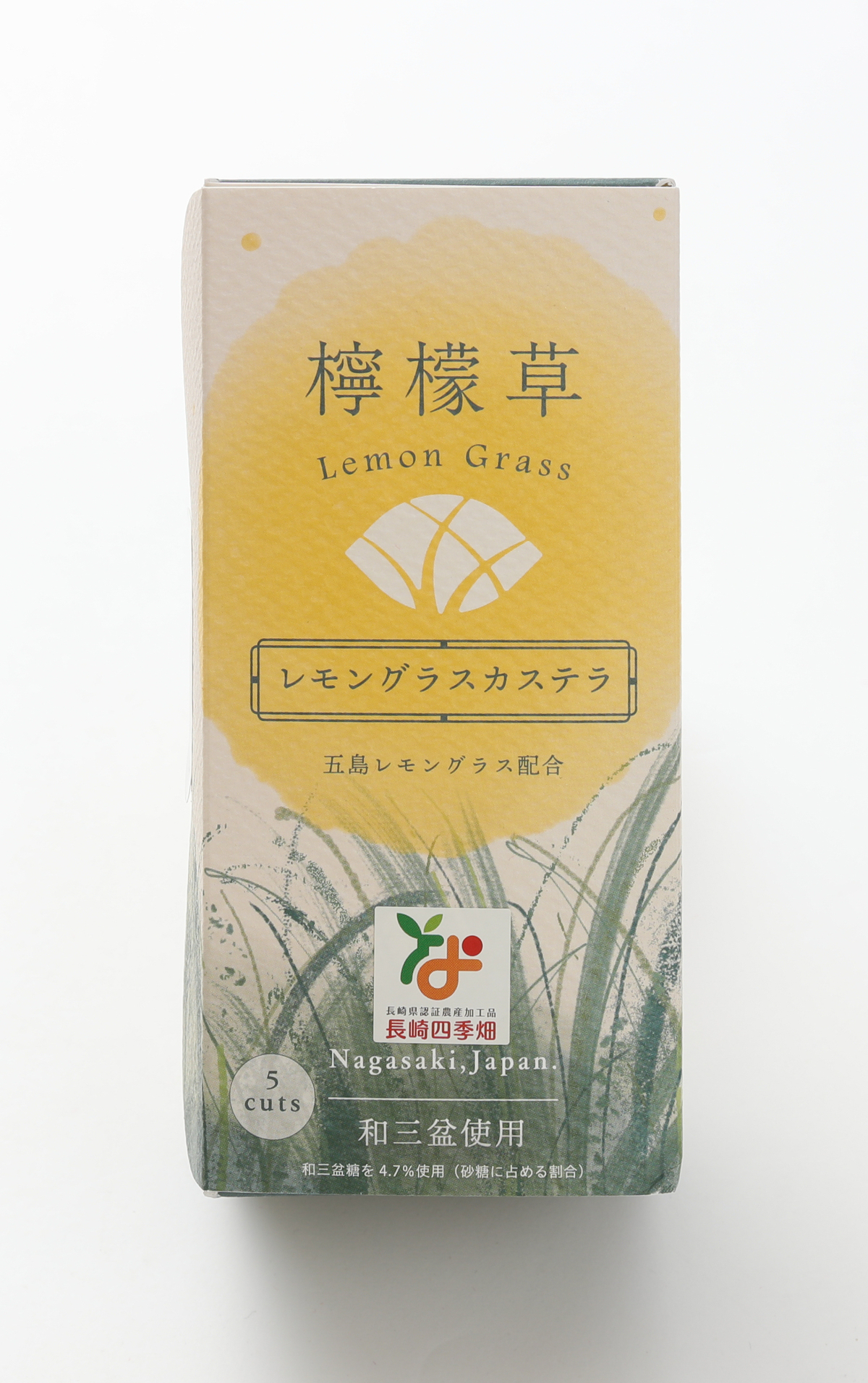五島の大自然に育まれた、グリーンティ五島さんの有機栽培レモングラスを使用。香り高く色鮮やかなレモングラスを生地に練り込み、職人が幾度と試作を重ね完成させた自慢のカステラです。ひとくち味わえば、爽やかな風味がふわりと口いっぱいに広がります。